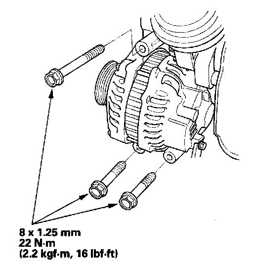 2. Install the three bolts securing the alternator.