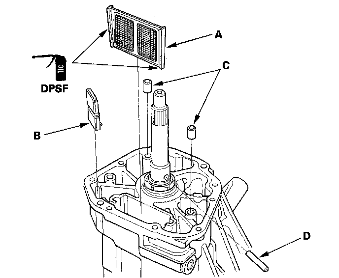 1. Apply differential fluid to the rubber of the ATF strainer (A), then install the ATF strainer, the magnet (B), the dowel pins (C), and the oil pump pin (D), in the differential carrier assembly.