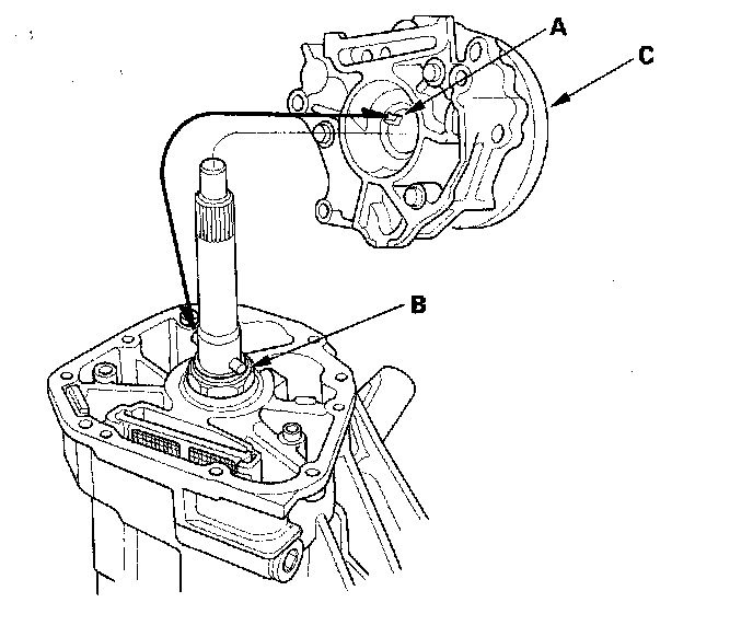 2. Align the grooves (A) of the rear oil pump with the oil pump pin (B), then install the oil pump body assembly (C) on the differential carrier assembly.