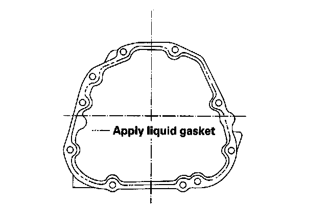 8. Remove the dirt and oil from the sealing surfaces. Apply liquid gasket (P/N 08718-0001) to the sealing surface. Make sure you sea[ the entire circumference of the bolt holes to prevent fluid leakage.