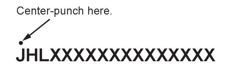 8. Center-punch a completion mark above the first character of the engine compartment VIN: