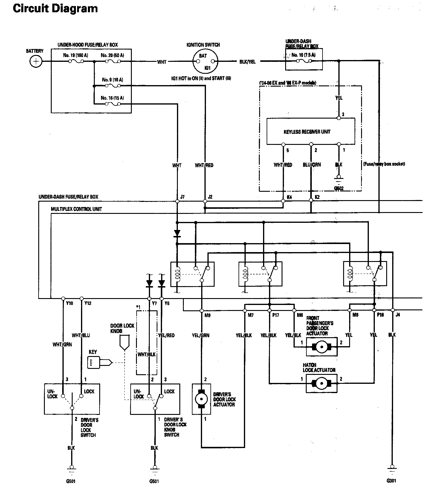 Keyless/Power Door Lock System Circuit Diagram