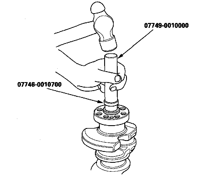 1. M/T model: Install the crankshaft end bushing when replacing the crankshaft. Using the special tools, drive in the crankshaft end bushing until the special tools bottom against the crankshaft.