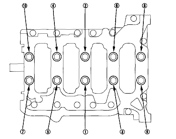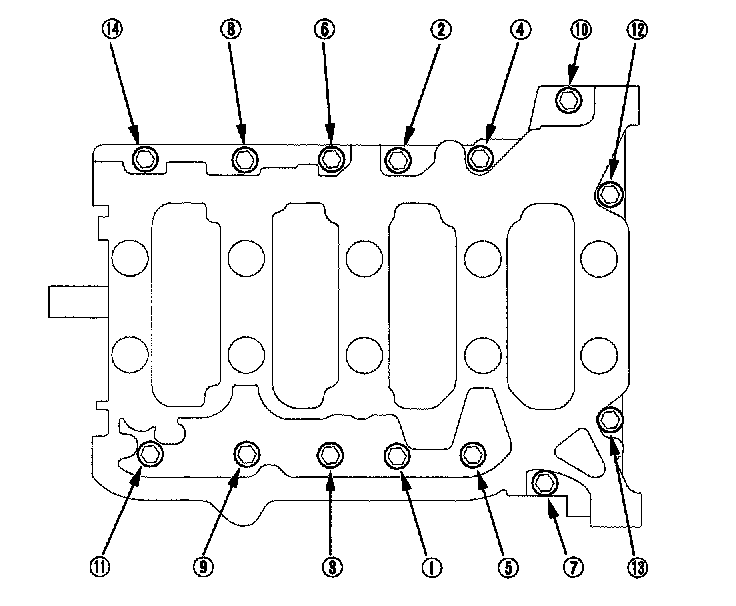 14. Remove all of the old liquid gasket from the lower block mating surfaces, bolts, and bolt holes.
