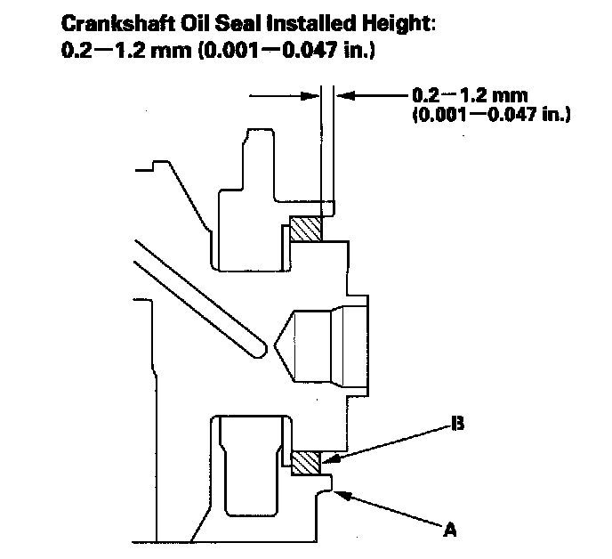 22. Measure the distance between the engine block (A) and crankshaft oil seal (B).