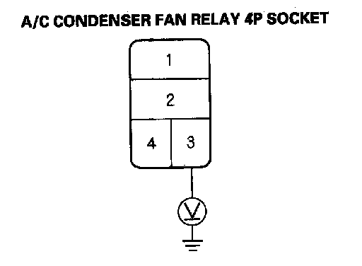 4. Measure the voltage between the No. 3 terminal of the A/C condenser fan relay 4P socket and body ground.