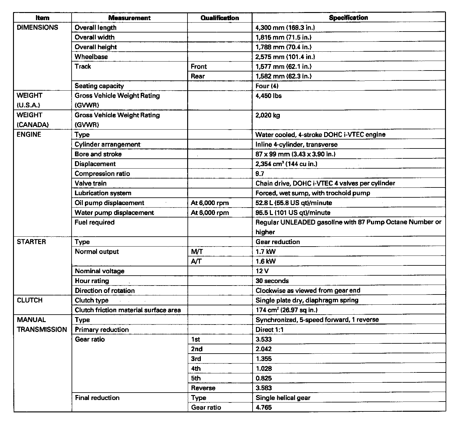 Element 2WD L4-2.4L