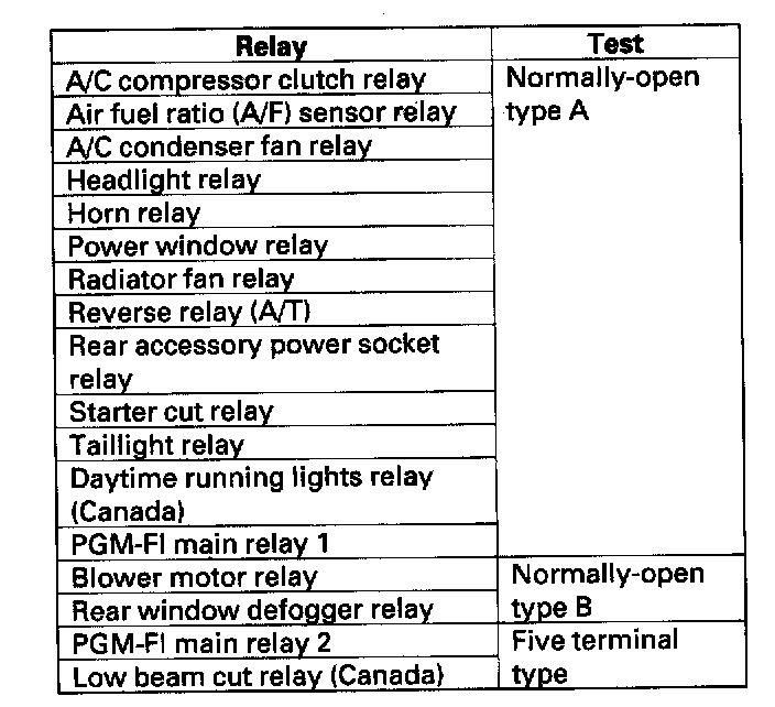 Use this chart to identify the type of relay, then do the test listed for it.