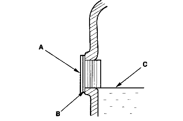 2. Remove the oil filler plug (A) and sealing washer (B), then check the condition of the fluid, and make sure the fluid is at the proper level (C).