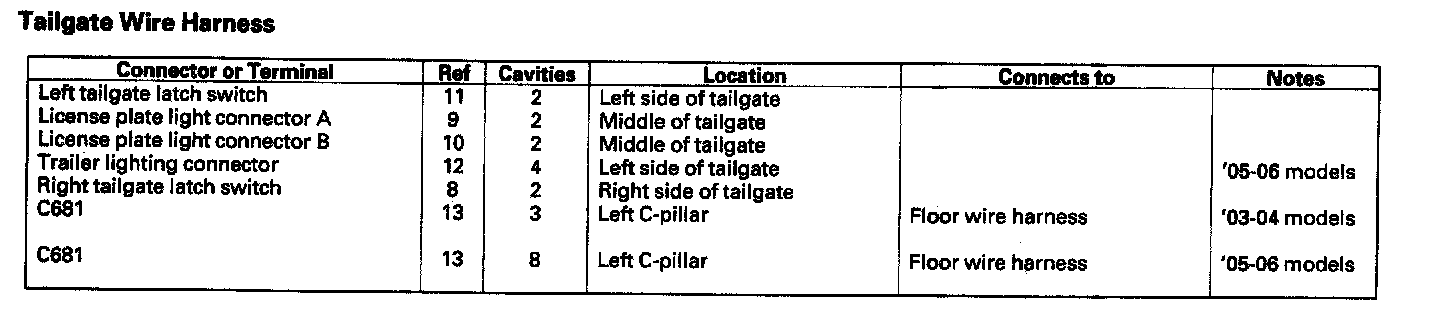 Tailgate Wire Harness: