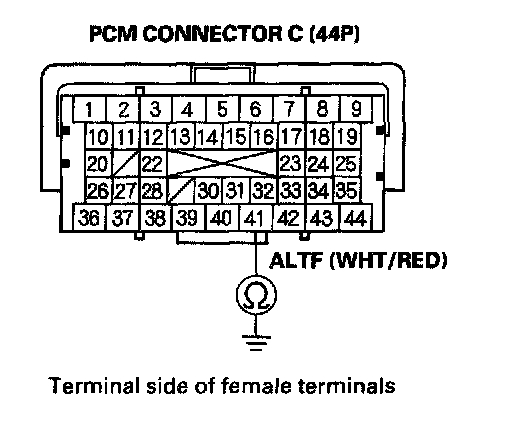 8. Check for continuity between body ground and PCM connector terminal C41.