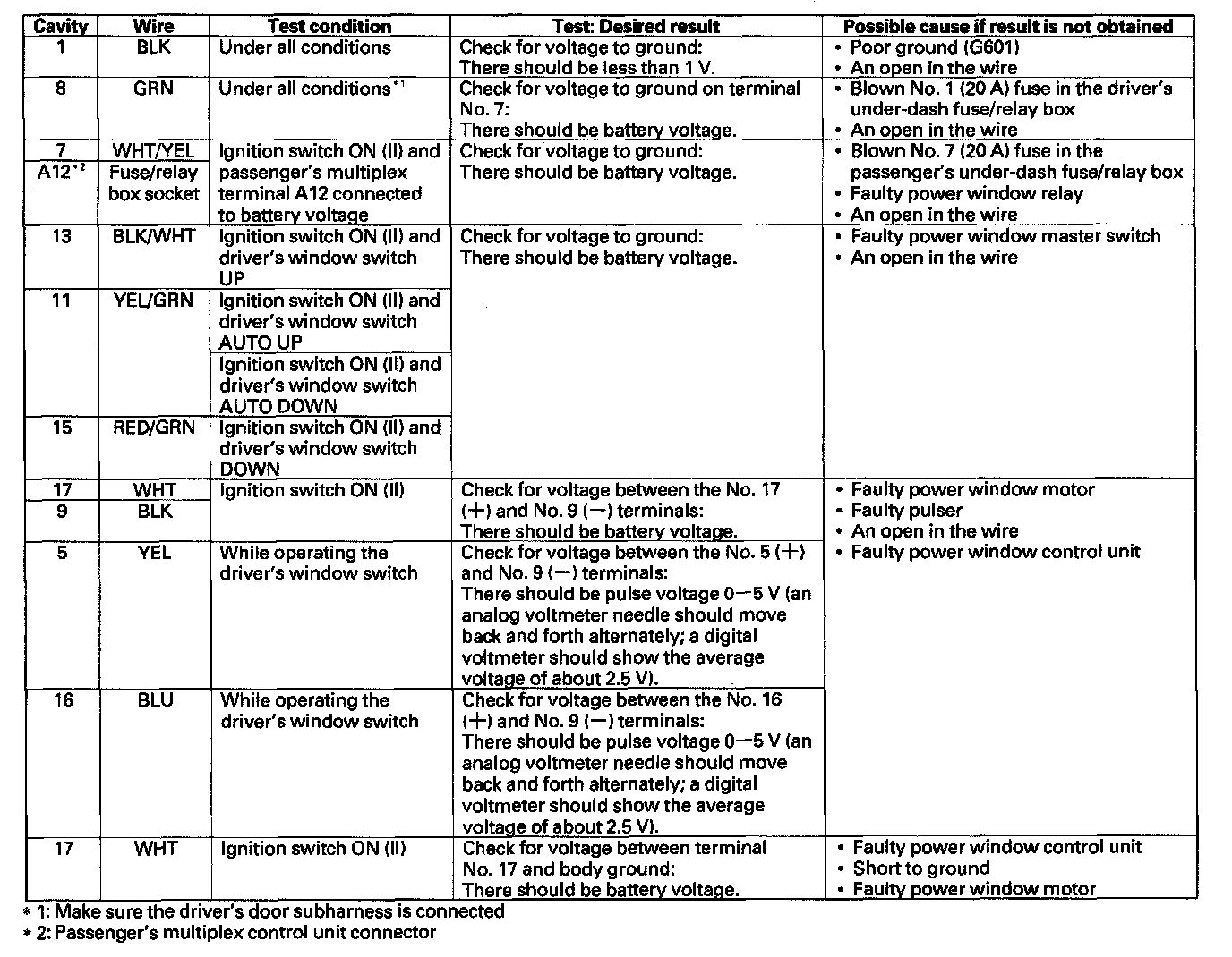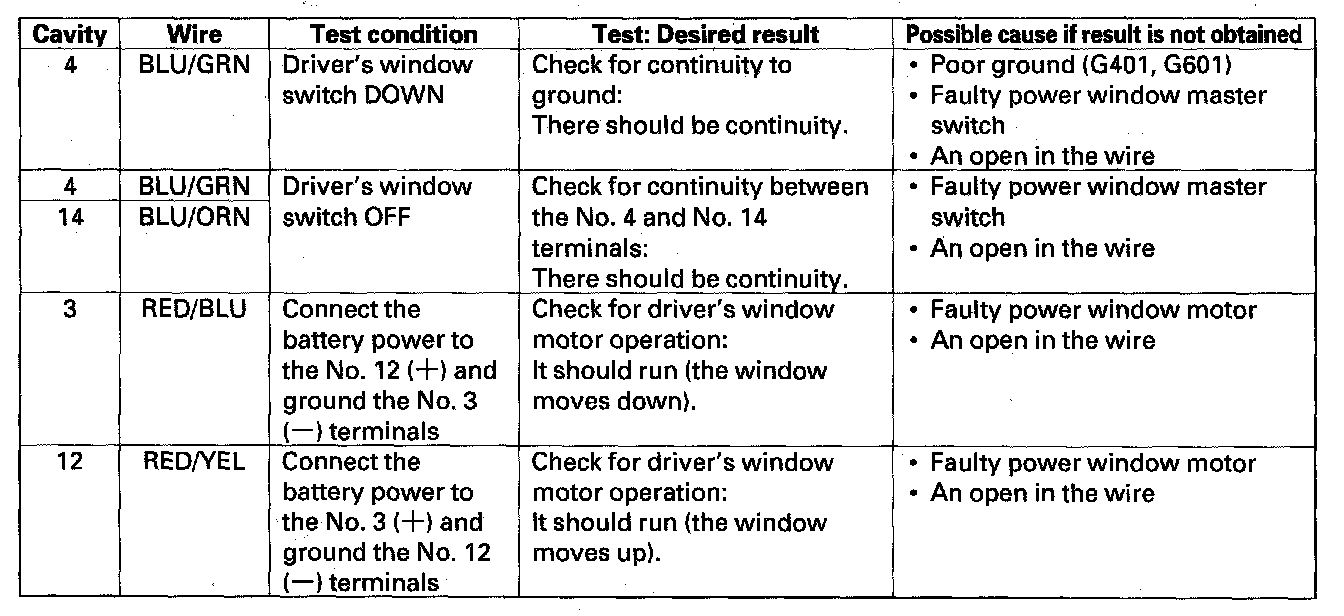 Power Window Control Unit Input Test1. Remove the driver's door panel, but leave the driver's door subharness connector connected to the driver's door wire harness.
