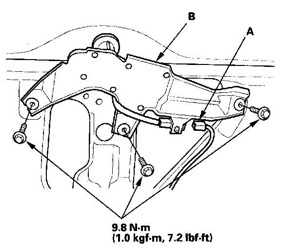 3. Disconnect the 4P connector (A) from the rear window wiper motor (B).