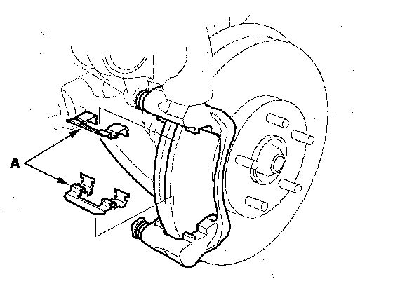 5. Remove the pad retainers (A).