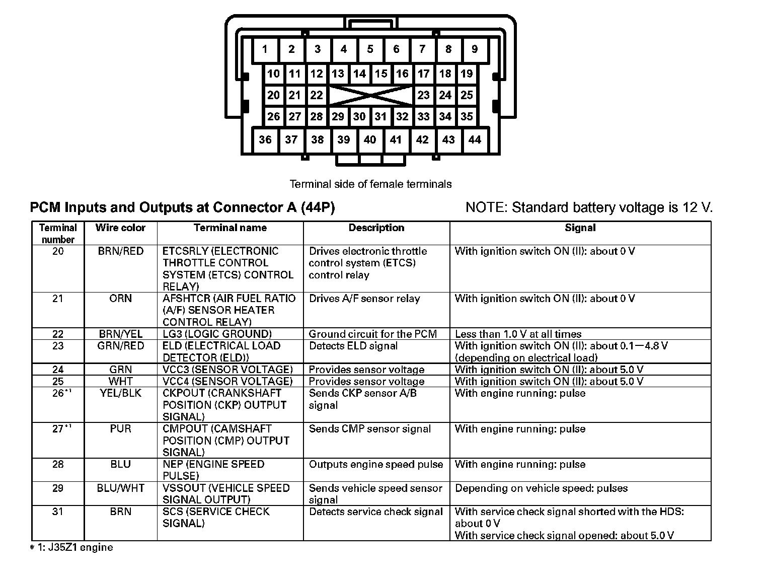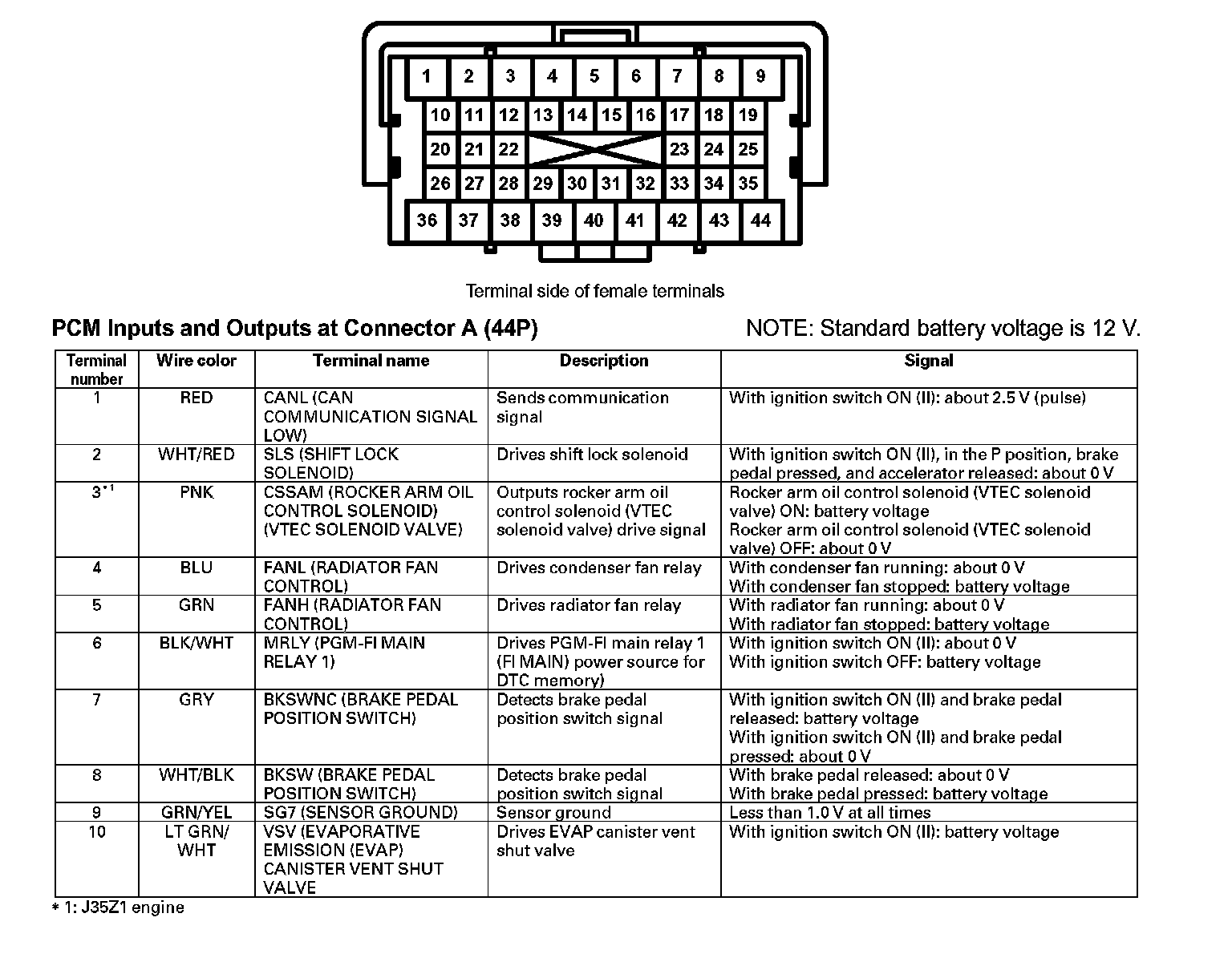 PCM Inputs And Outputs At Connector A (44P) Part 1: