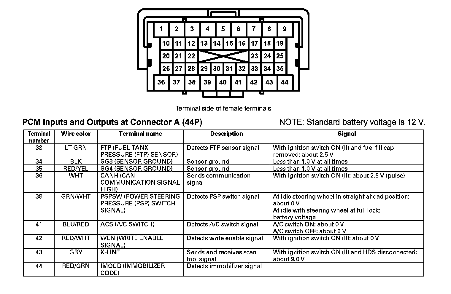 PCM Inputs And Outputs At Connector A (44P) Part 4:
