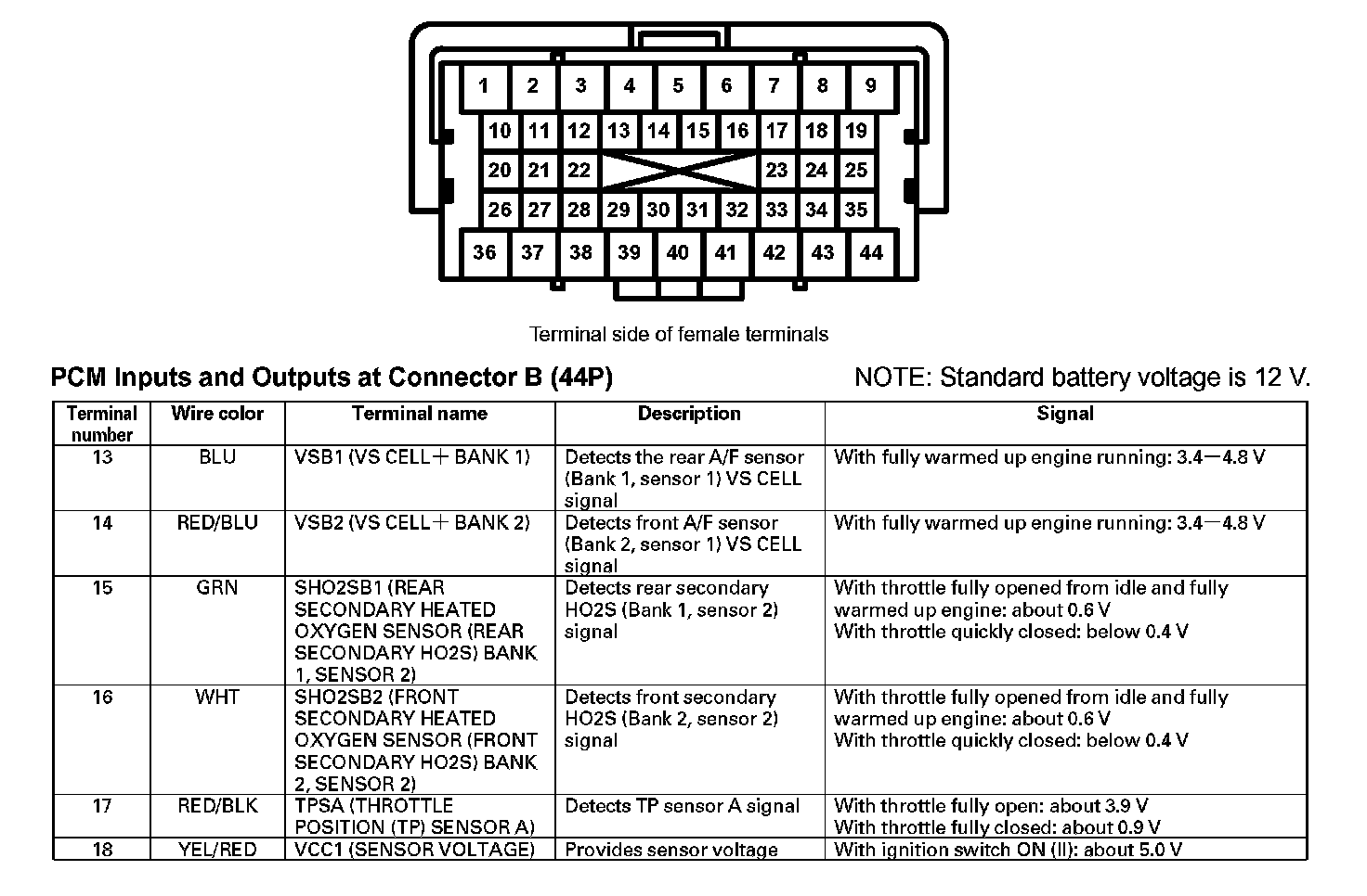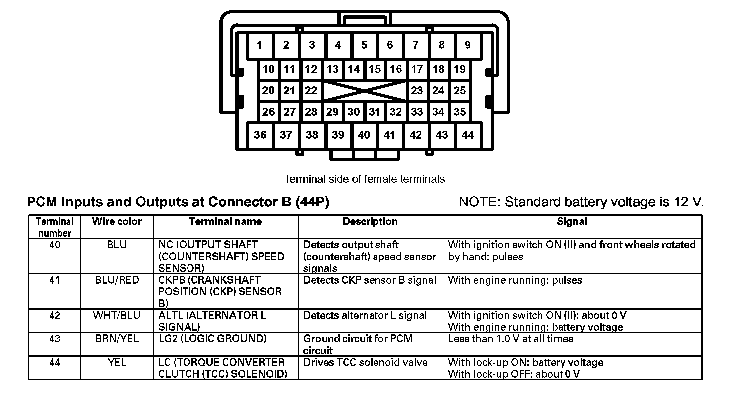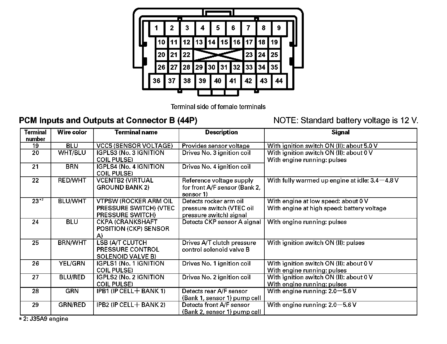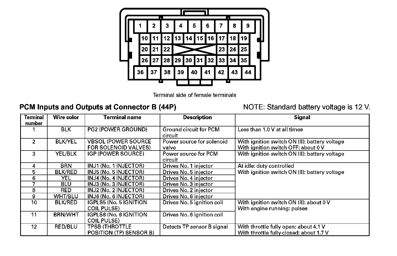 PCM Inputs And Outputs At Connector B (44P) Part 4: