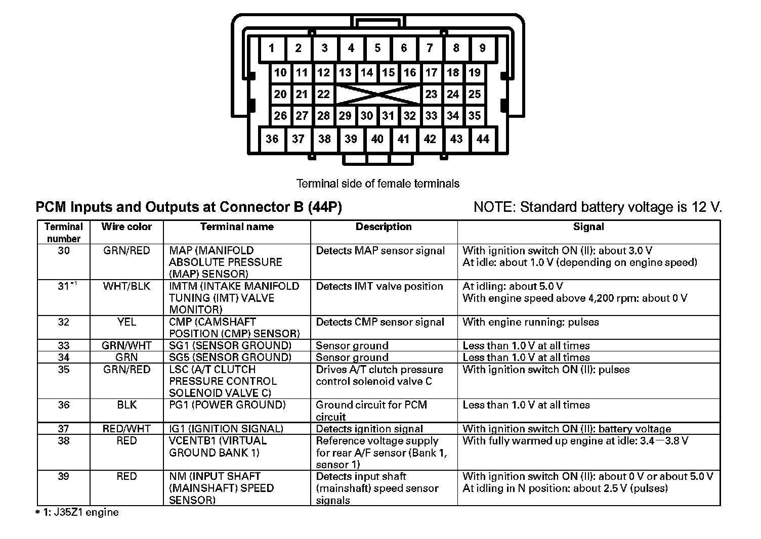PCM Inputs And Outputs At Connector B (44P) Part 1: