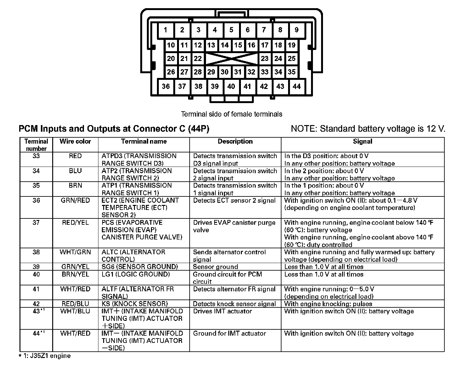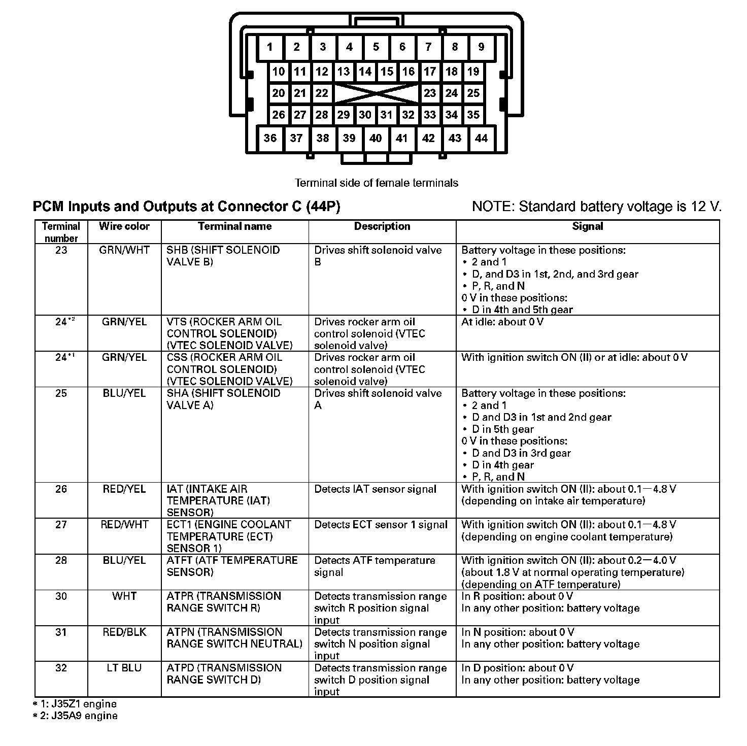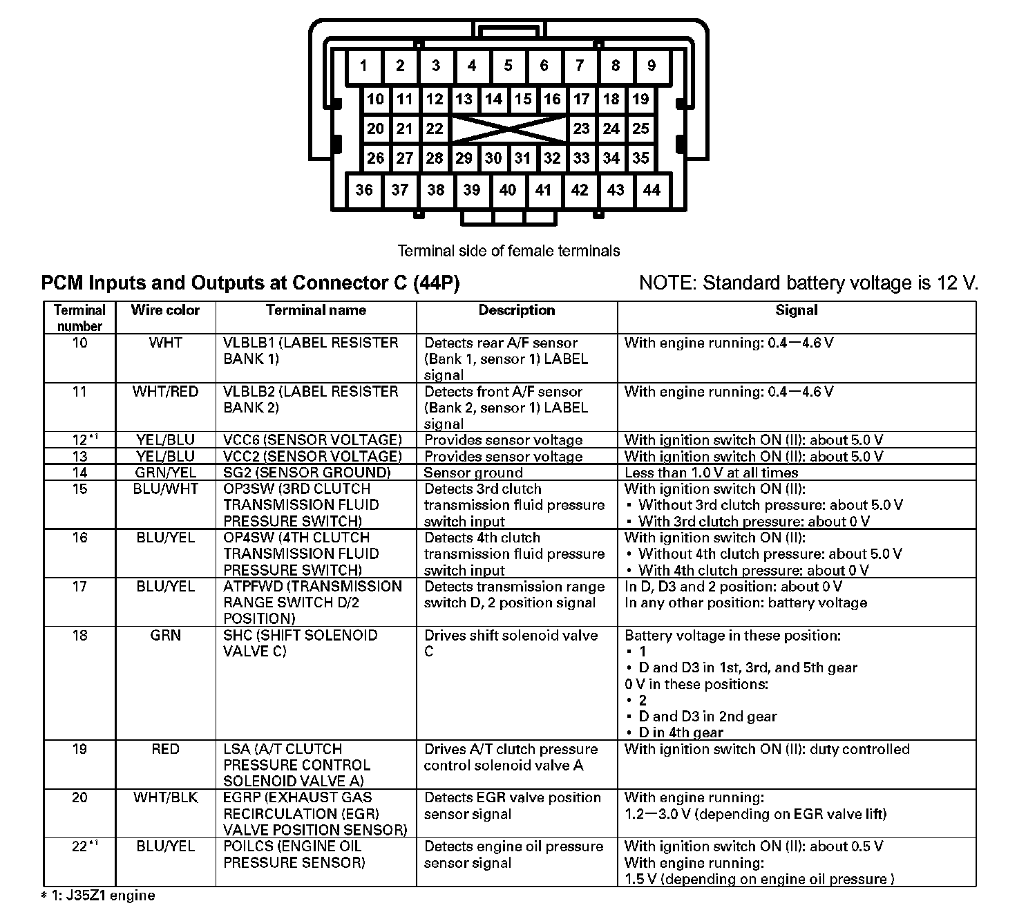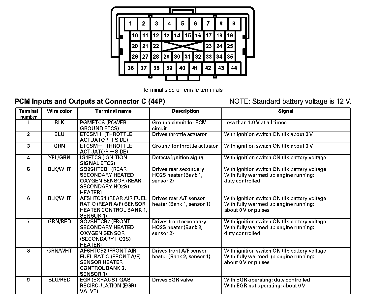 PCM Inputs And Outputs At Connector C (44P) Part 1: