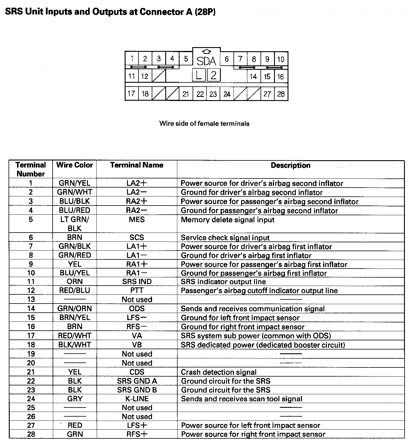 SRS Unit Inputs And Outputs At Connector A (28P):