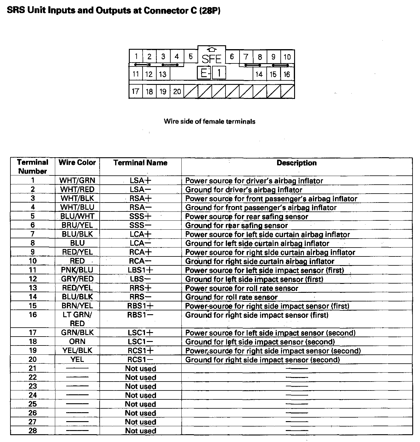 SRS Unit Inputs And Outputs At Connector C (28P):