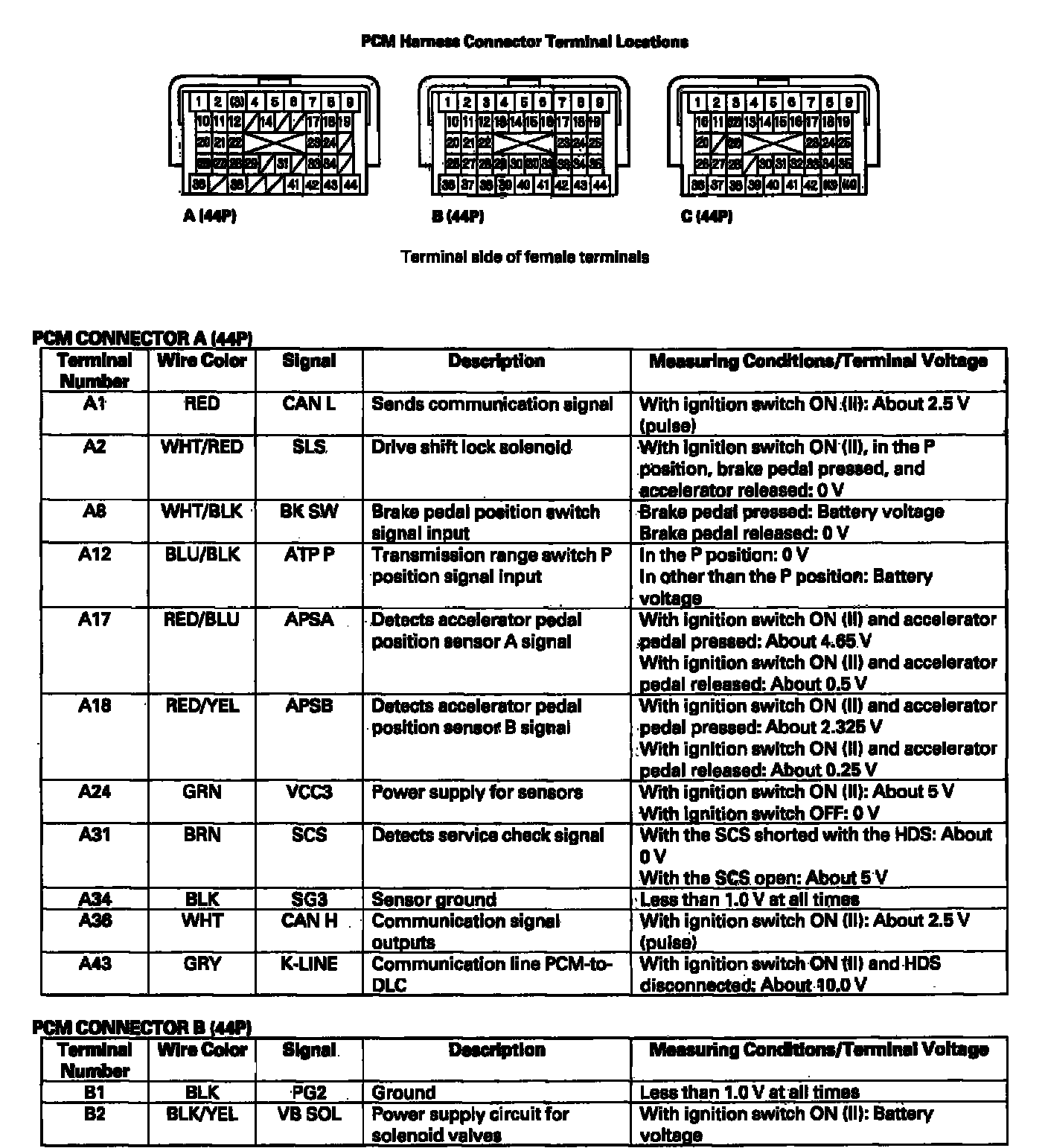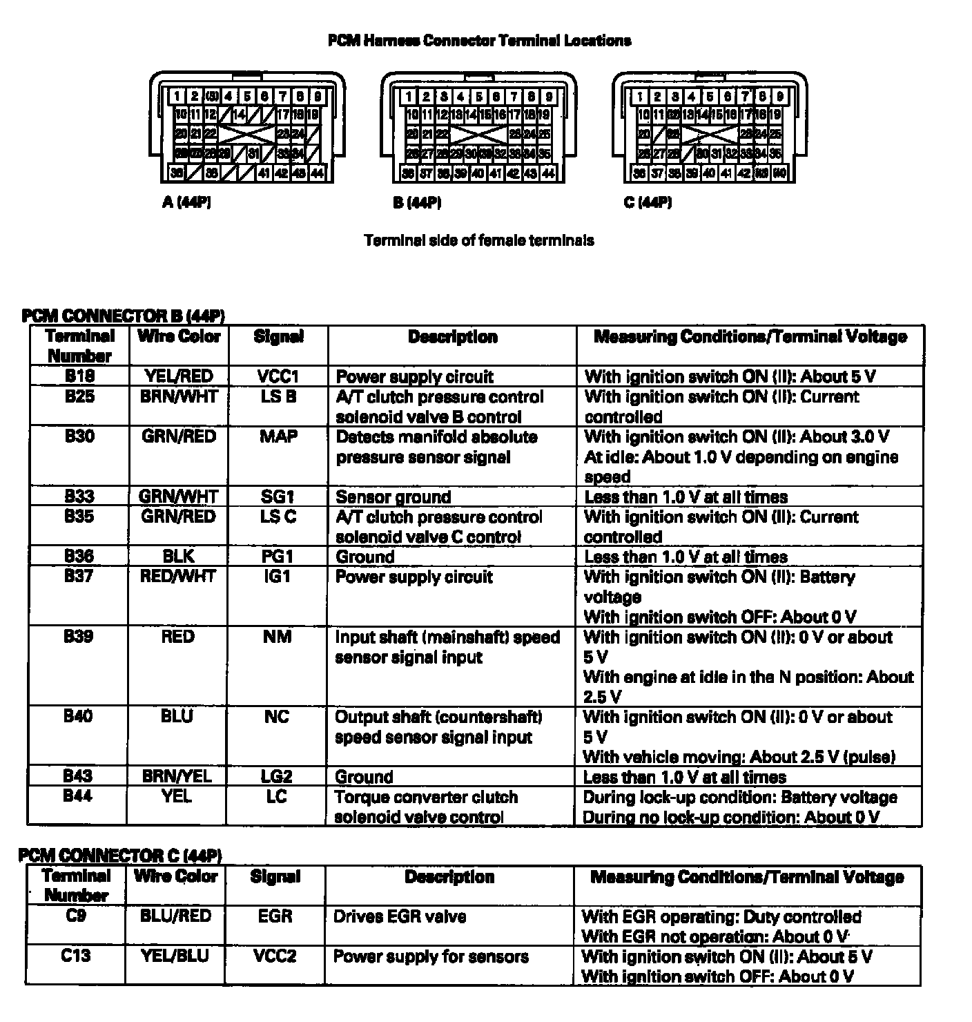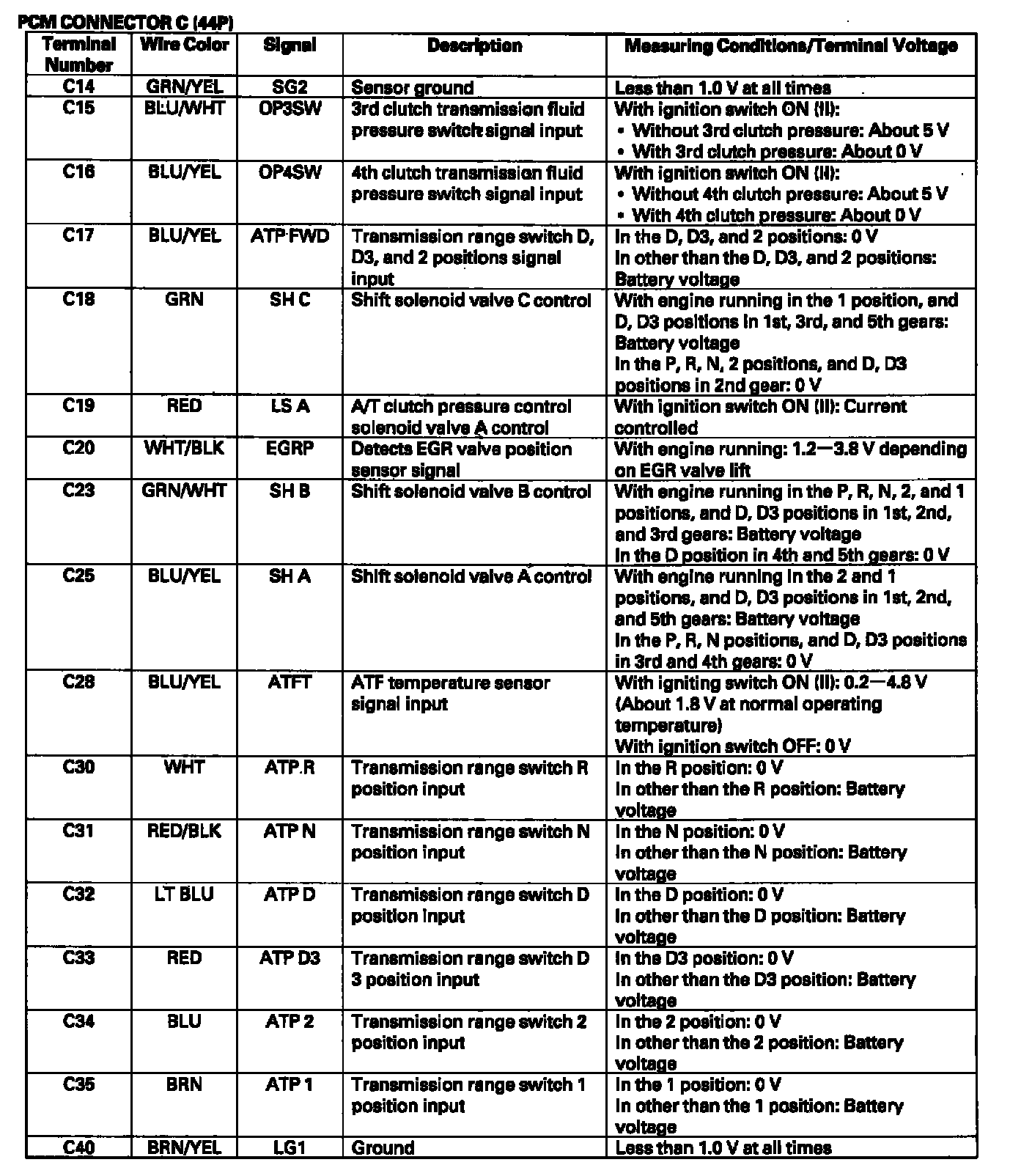 The PCM instantly determines which gear should be selected by various signals sent from sensors and switches, and it actuates the shift solenoid valves A, B, and C to control shifting transmission gear.