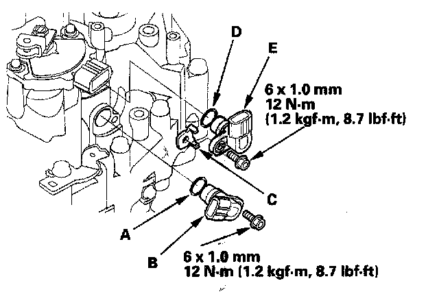 68. Install the new O-ring (D) on the output shaft (countershaft) speed sensor (E), and install the output shaft (countershaft) speed sensor.