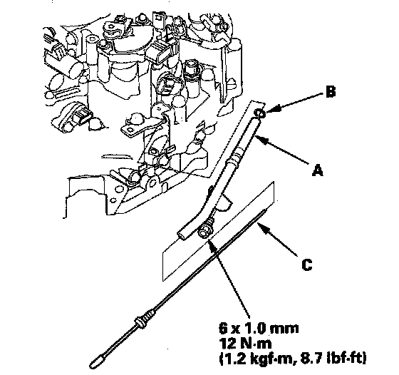 75. Install the ATF dipstick (C) in its guide pipe.