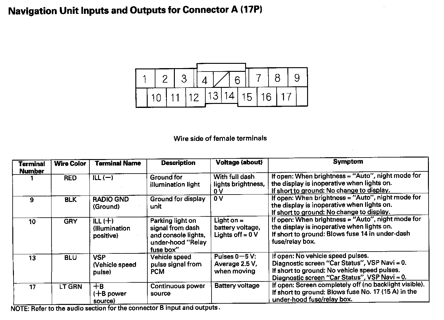Navigation Unit Inputs And Outputs For Connector A (17P):