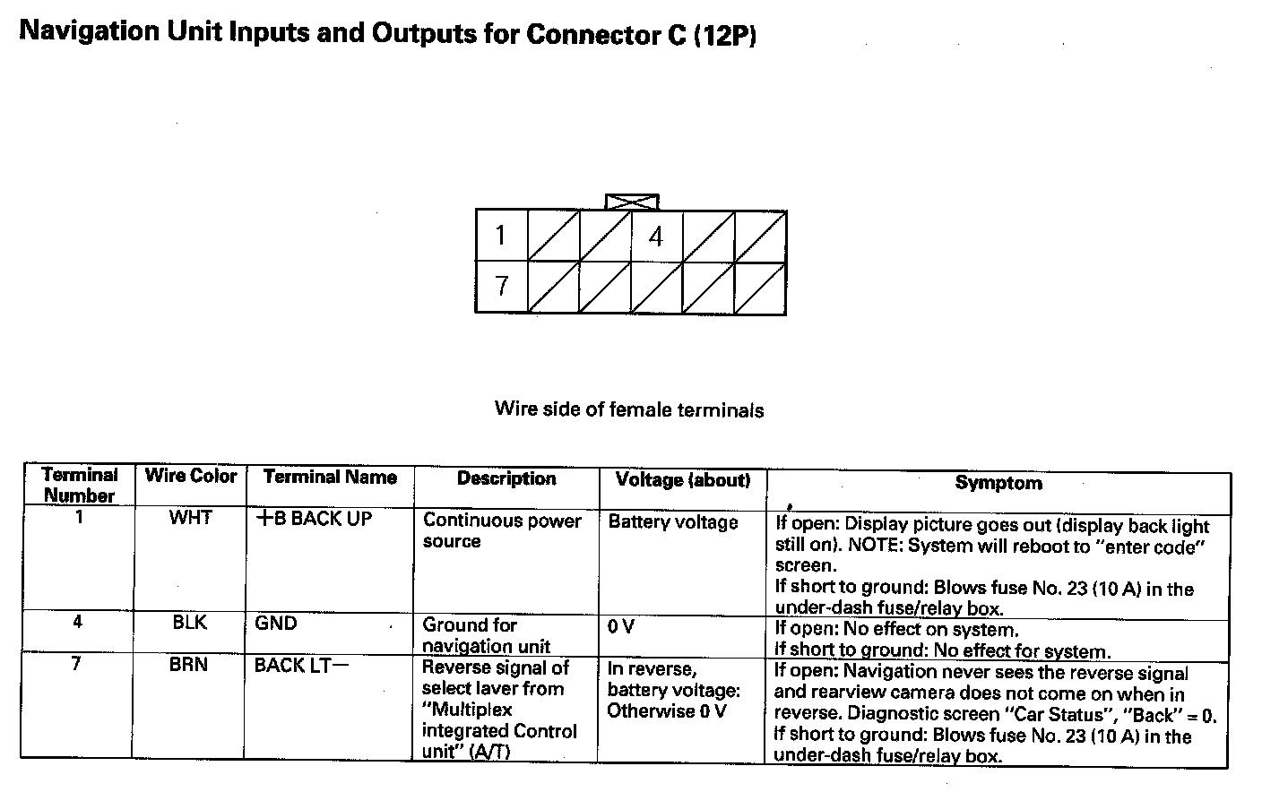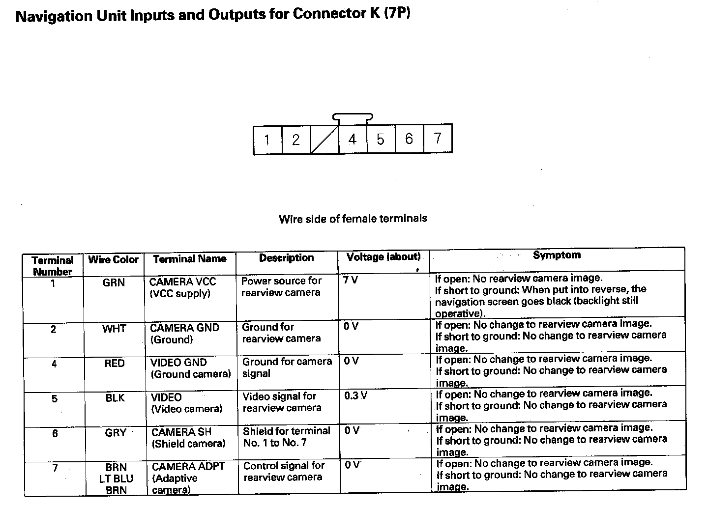 Navigation Unit Inputs And Outputs For Connector K (7P):