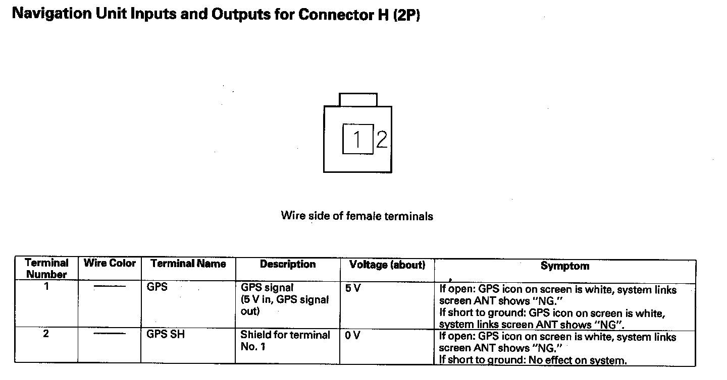 Navigation Unit Inputs And Outputs For Connector H (2P):