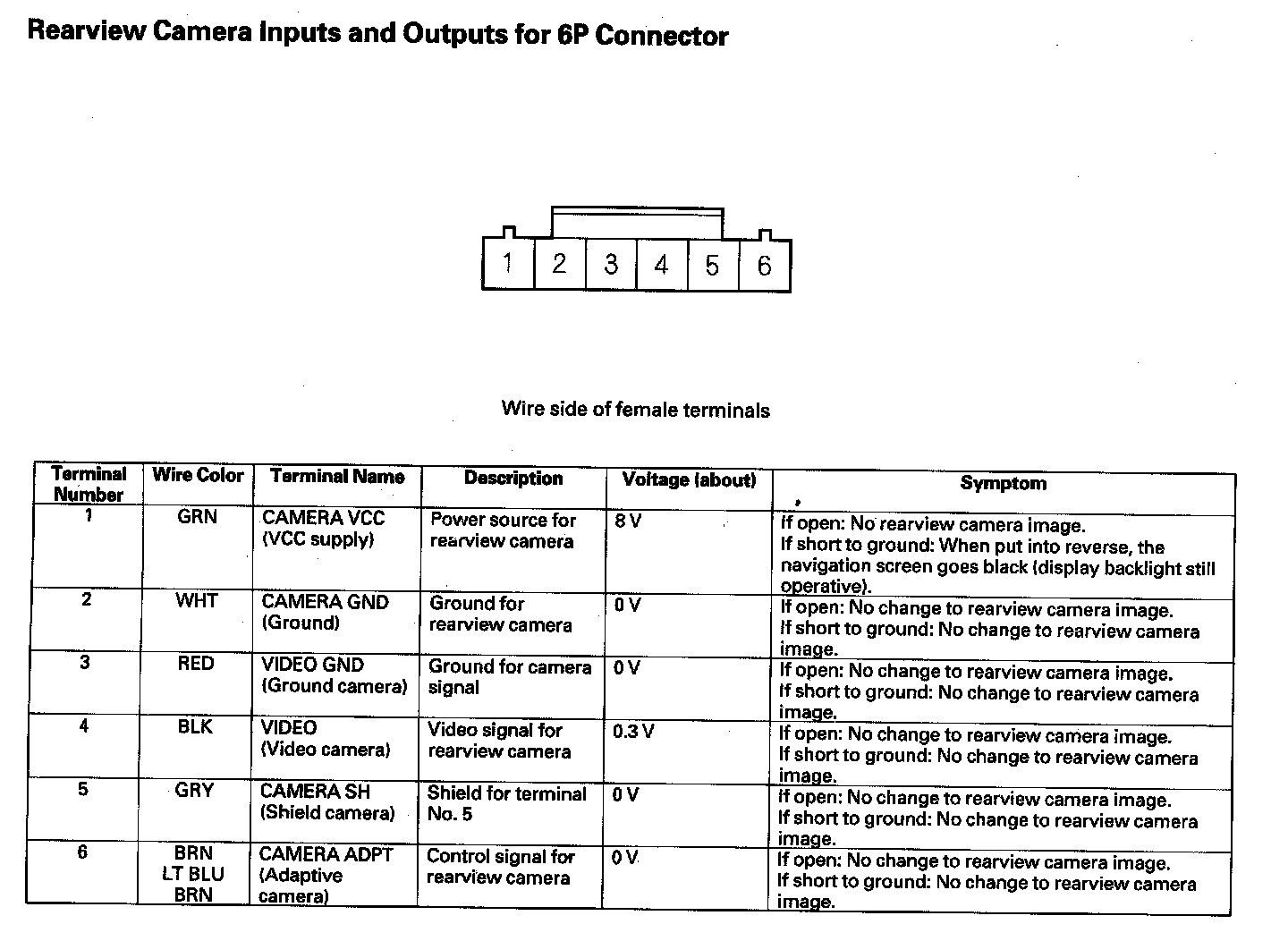 Rearview Camera Inputs And Outputs For 6P Connector: