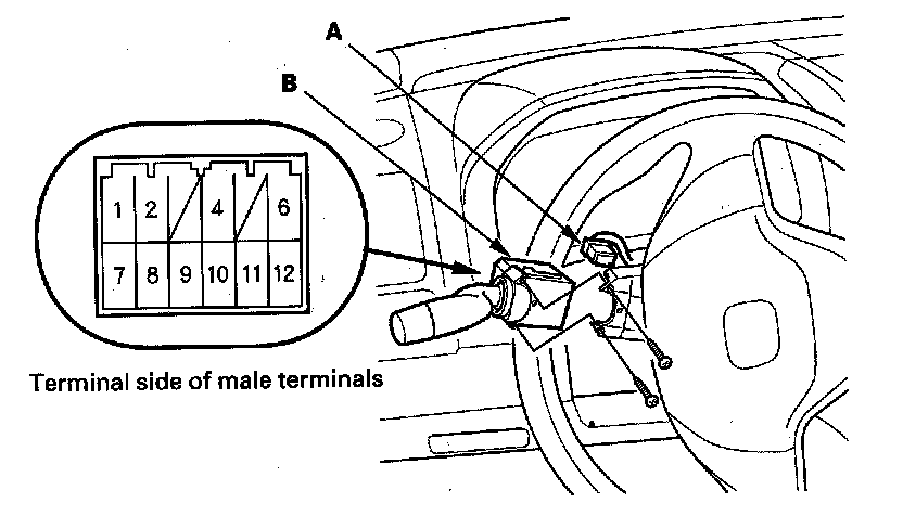 3. Disconnect the 12P connector (A) from the combination light switch (B).
