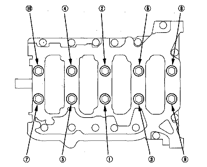 Main Bearing Cap1st Tighten the bearing cap bolts, in sequence 29 N-m (3.0 kgf-m, 22 lbf-ft).