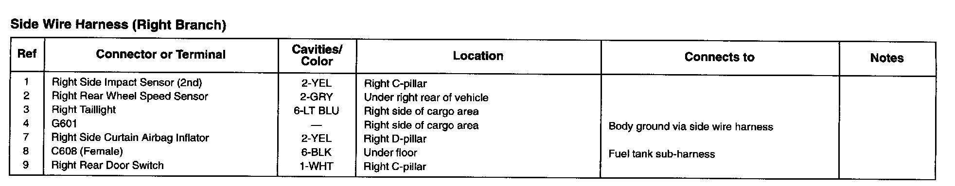 Side Wire Harness (Right Branch):