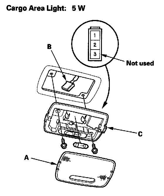 3. Remove the screws, then remove the cargo area light (B).