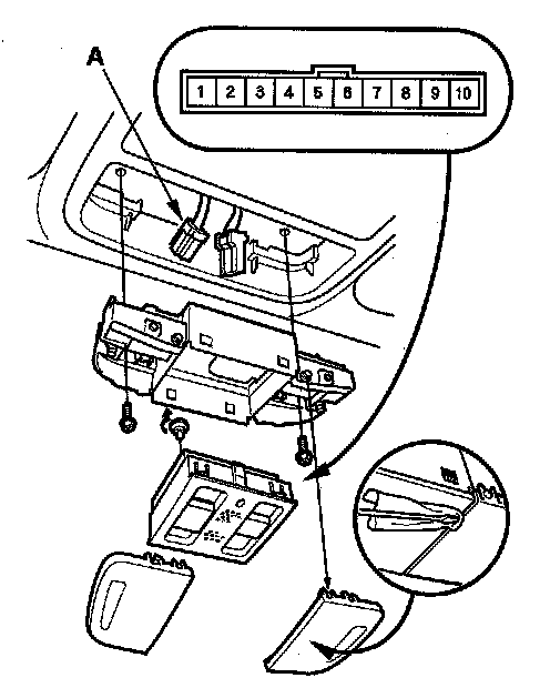 2. Disconnect the 10P connector (A) from the moonroof switch.