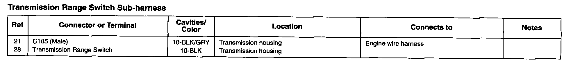 Transmission Range Switch Sub-harness: