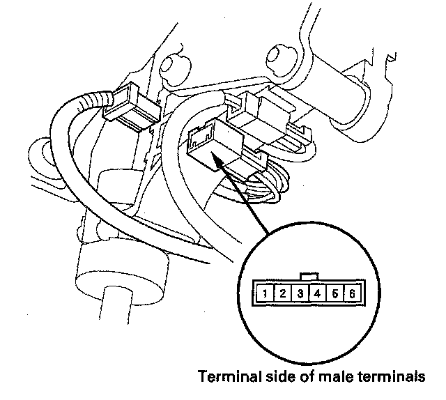 3. Push the D3 switch several times, and check the switch for continuity between D3 switch/park pin switch/A/T Gear Position indicator panel light connector terminals No. 5 and No. 6. There should be toggled continuity and no continuity between terminals every time the D3 switch is pushed.