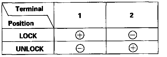 3. Check actuator operation by connecting power and ground according to the table. To prevent damage to the actuator, apply battery voltage only momentarily.