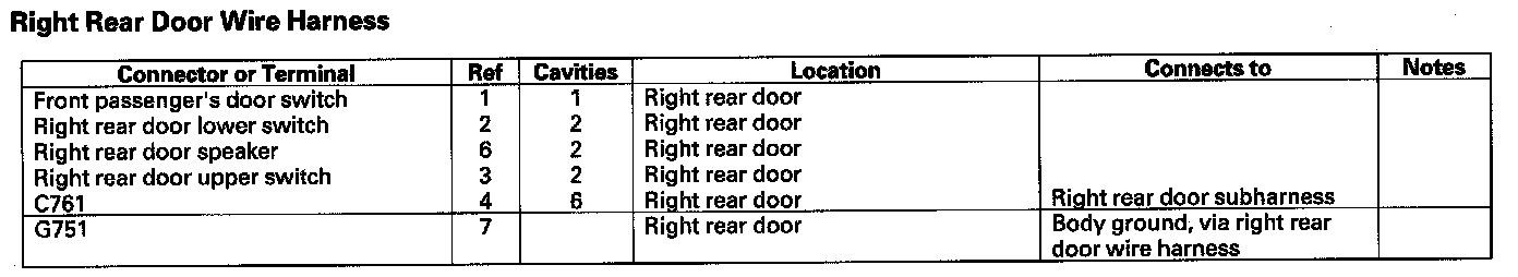 Right Rear Door Wire Harness: