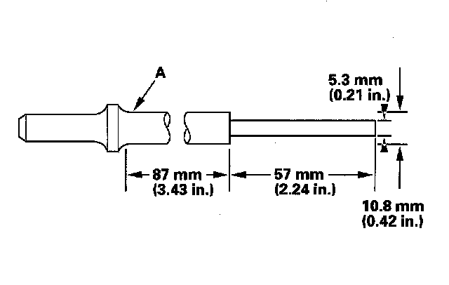 5. Working from the camshaft side, use the driver and an air hammer to drive the guide about 2 mm (0.1 in.) towards the combustion chamber. This will knock off some of the carbon and make removal easier. Hold the air hammer directly in line with the valve guide to prevent damaging the driver. Wear safety goggles or a face shield.