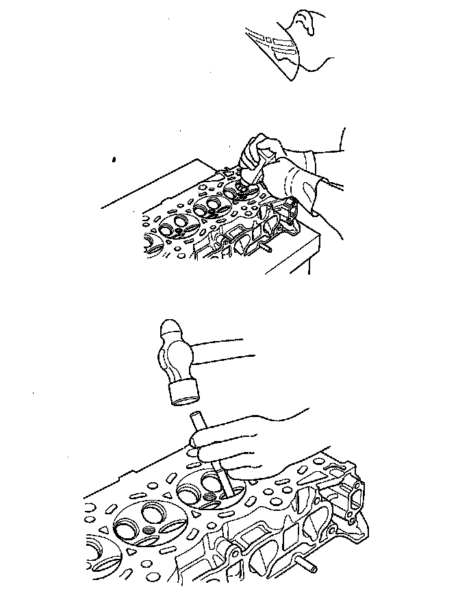 6. Turn the head over, and drive the guide out toward the camshaft side of the head.