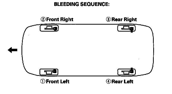 NOTE: Bleed the calipers or the wheel cylinders in the sequence shown.
