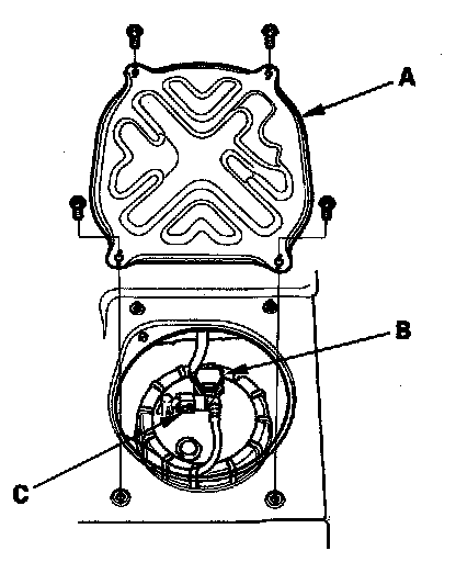 6. Disconnect the quick-connect fitting (C) from the fuel tank unit.