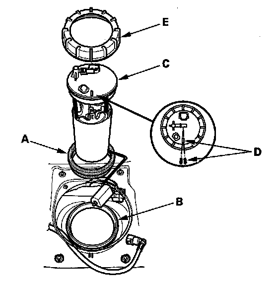 2. Insert the fuel tank unit (C) into the fuel tank. Be careful not to bend the fuel gauge sending unit.