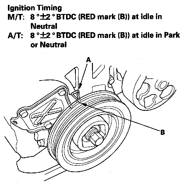 Ignition Timing Inspection1. Connect the Honda Diagnostic System (HDS) to the data link connector (DLC), and check for DTCs. If a DTC is present, diagnose and repair the cause before inspecting the ignition timing.