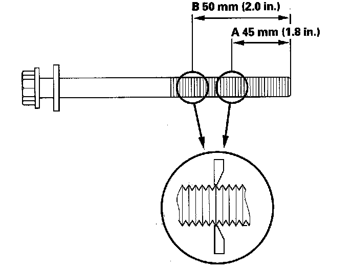 Cylinder HeadMeasure the diameter of each cylinder head bolt at point A and point B.