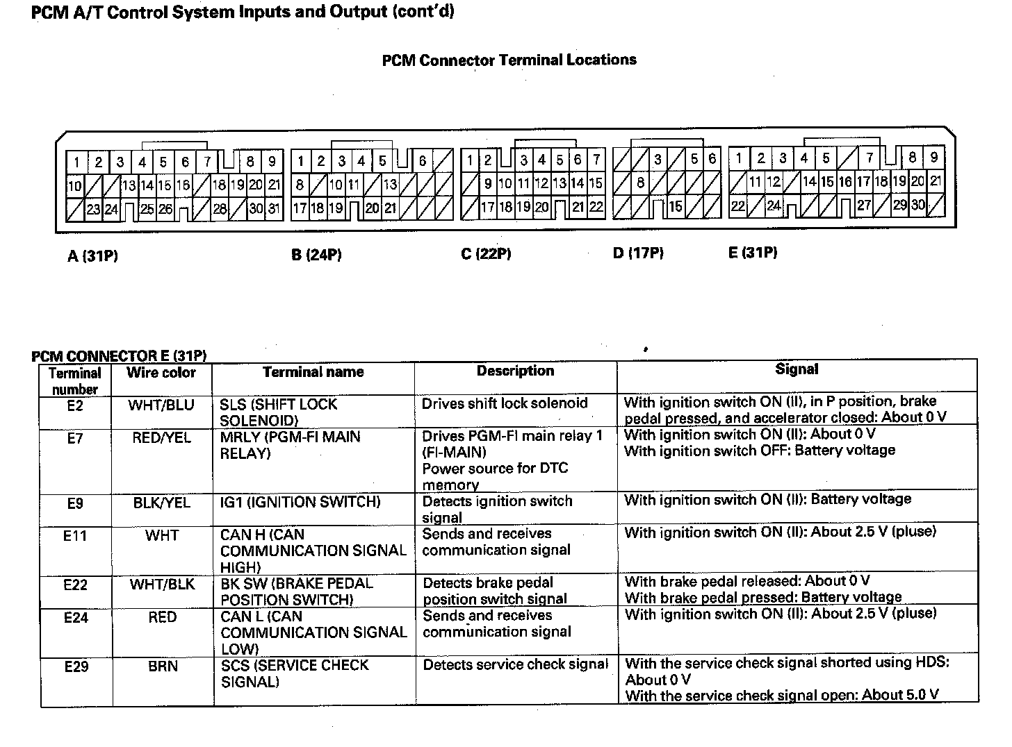 PCM A/T Control System Input and Output (Part 2):