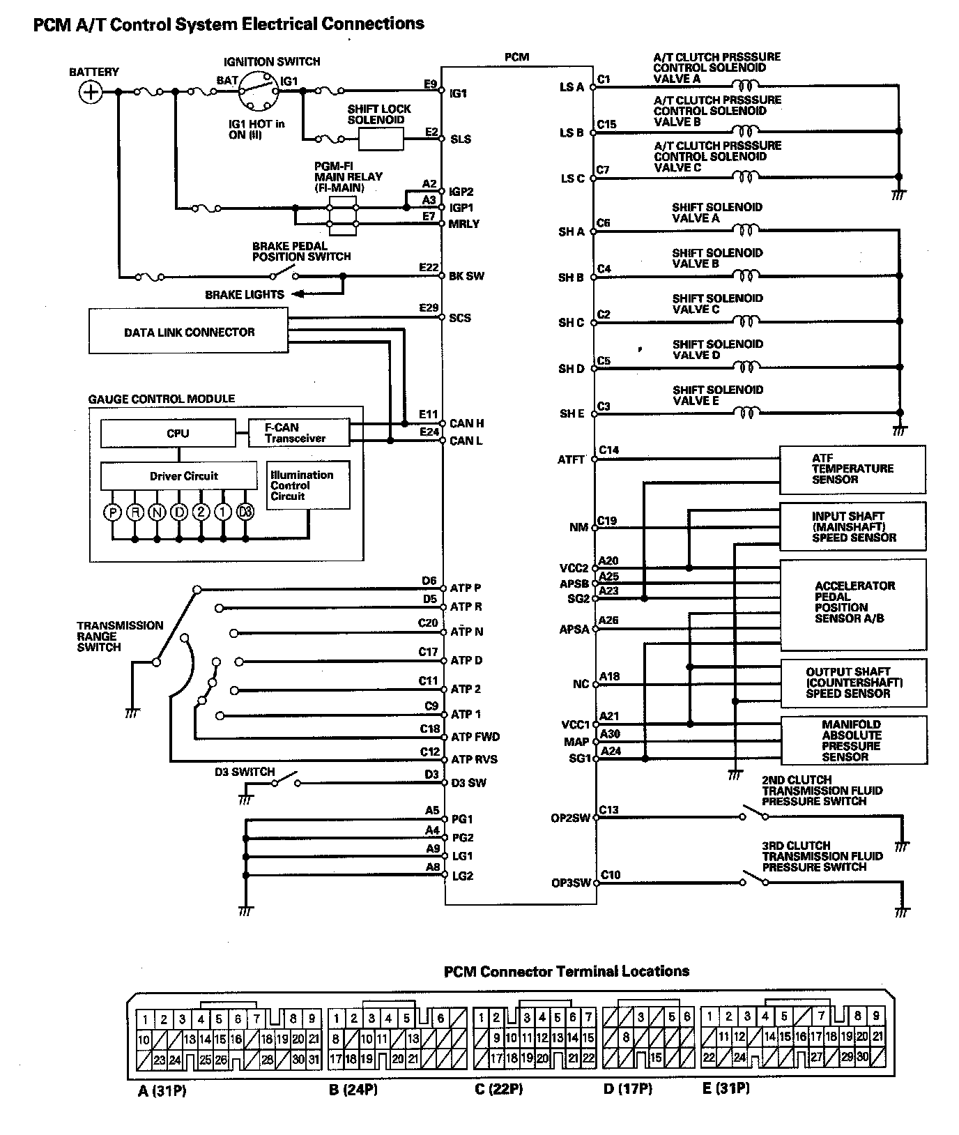 PCM A/T Control System Electrical Connections: